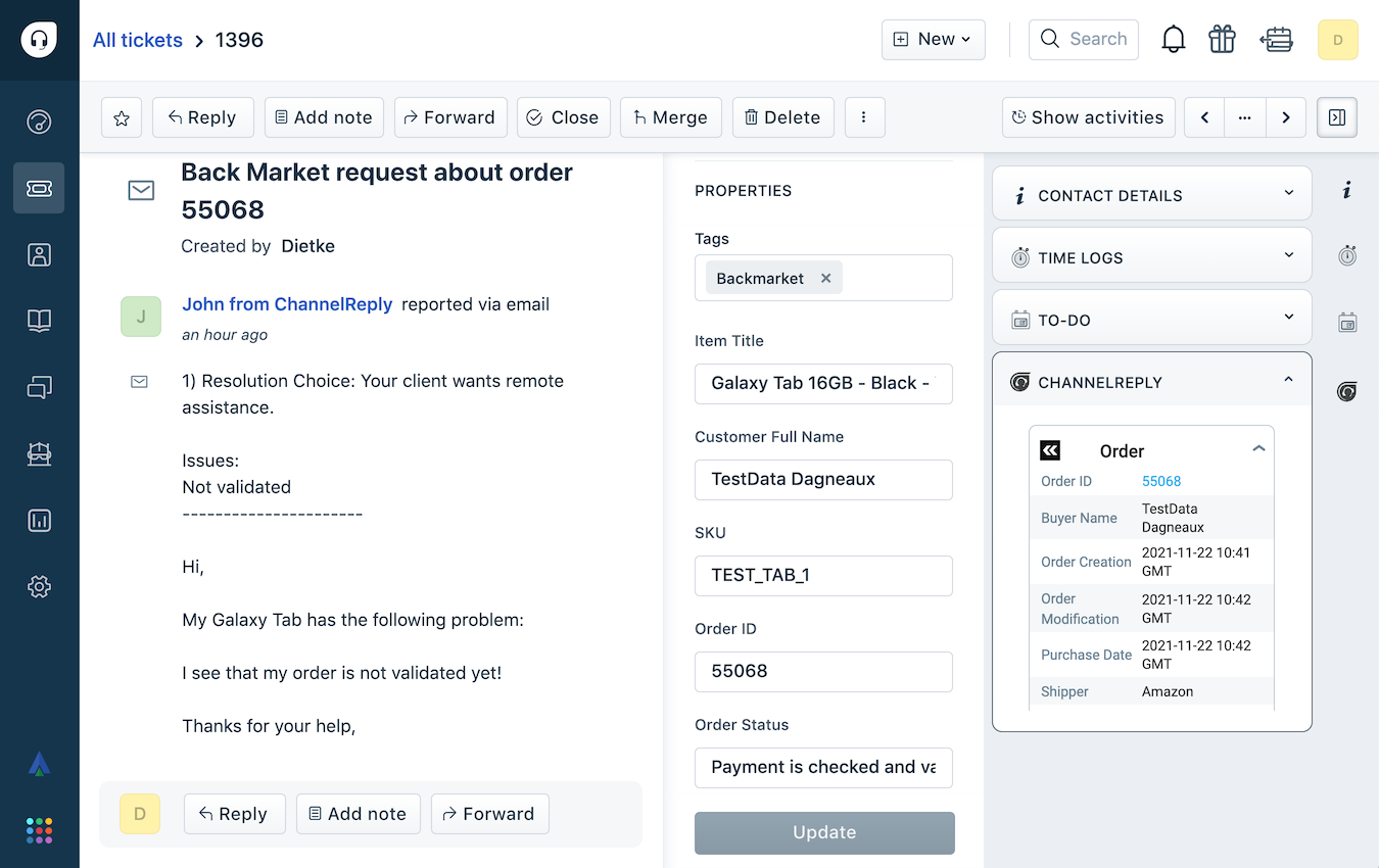 ChannelReply integrates Freshdesk with the Amazon, eBay, Shopify, Walmart, Etsy, Back Market and Newegg APIs. That way, you really can support everything on one screen.